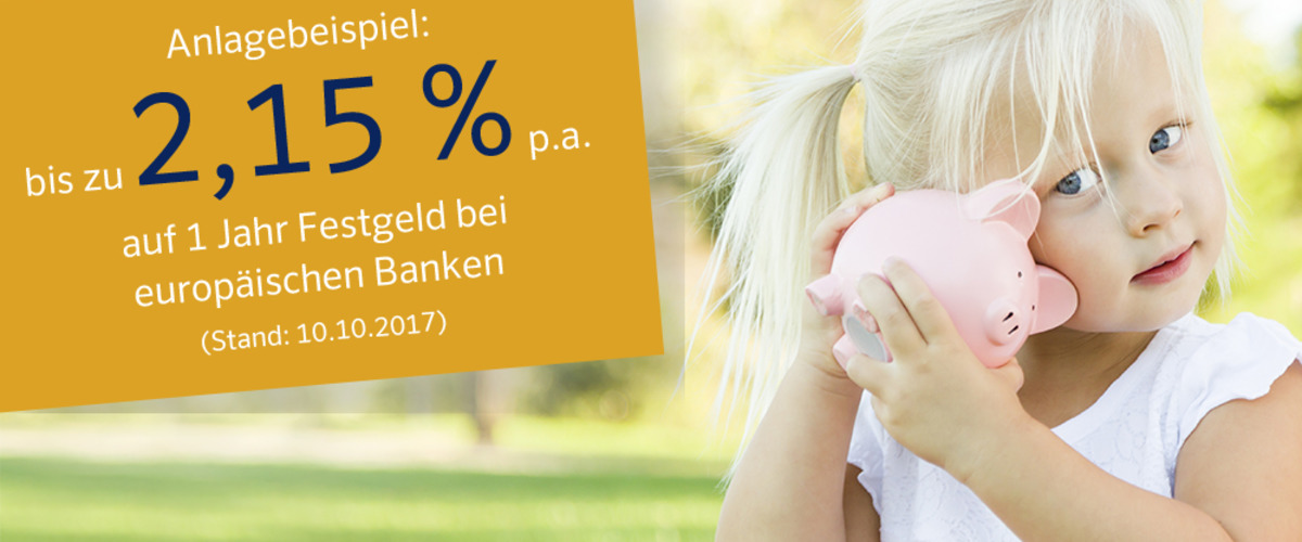 Über unsere Bankpartner können Sie bei verschiedenen europäischen Banken auf attraktivere und ebenfalls sichere Festgeldanlagen zurückgreifen. Legen Sie Ihr Vermögen in Festgeldern mit einer attraktiven Verzinsung an. Sie entscheiden, wo Sie in Europa Ihr Geld anlegen! Dank EU-Richtlinie ist Ihr Sparguthaben bis zum Gegenwert von 100.000 € zu 100 % abgesichert. Außerdem haben Sie die Möglichkeit in sog. Flexgelder zu investieren, die wie beim Festgeld eine höhere Verzinsung bieten, bei denen Sie aber auch vorzeitig gegen einen Zinsabschlag wieder über Ihr Geld verfügen können. Besonders zu empfehlende Banken wurden bereits von Stiftung Warentest beurteilt und sind in unserem Portfolio berücksichtigt. Um Ihr Geld anzulegen, müssen Sie nur ein neues Konto eröffnen, sodass Ihr Betrag direkt bei der ausgewählten Bank platziert werden kann. Zusätzlich zur Rendite erhalten Sie als Neukunde je nach Anlagehorizont eine Willkommensprämie. Sprechen Sie uns einfach an – wir finden gemeinsam den passenden Bankpartner für Ihre Anlage!